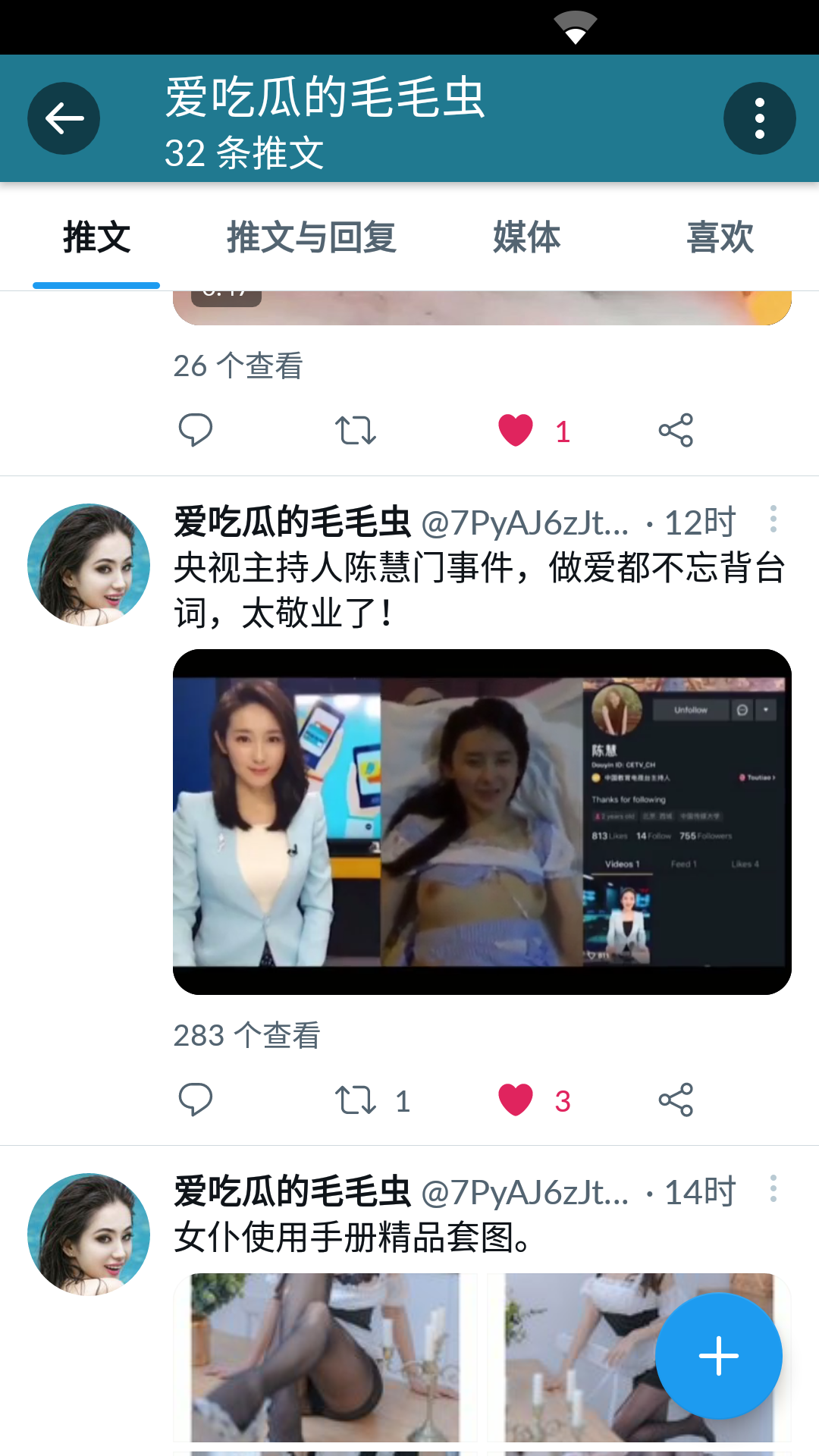 逛推特看到一位吃瓜区新人Up主,专发些国内热门颜色事件的瓜。求推荐类似Up主。