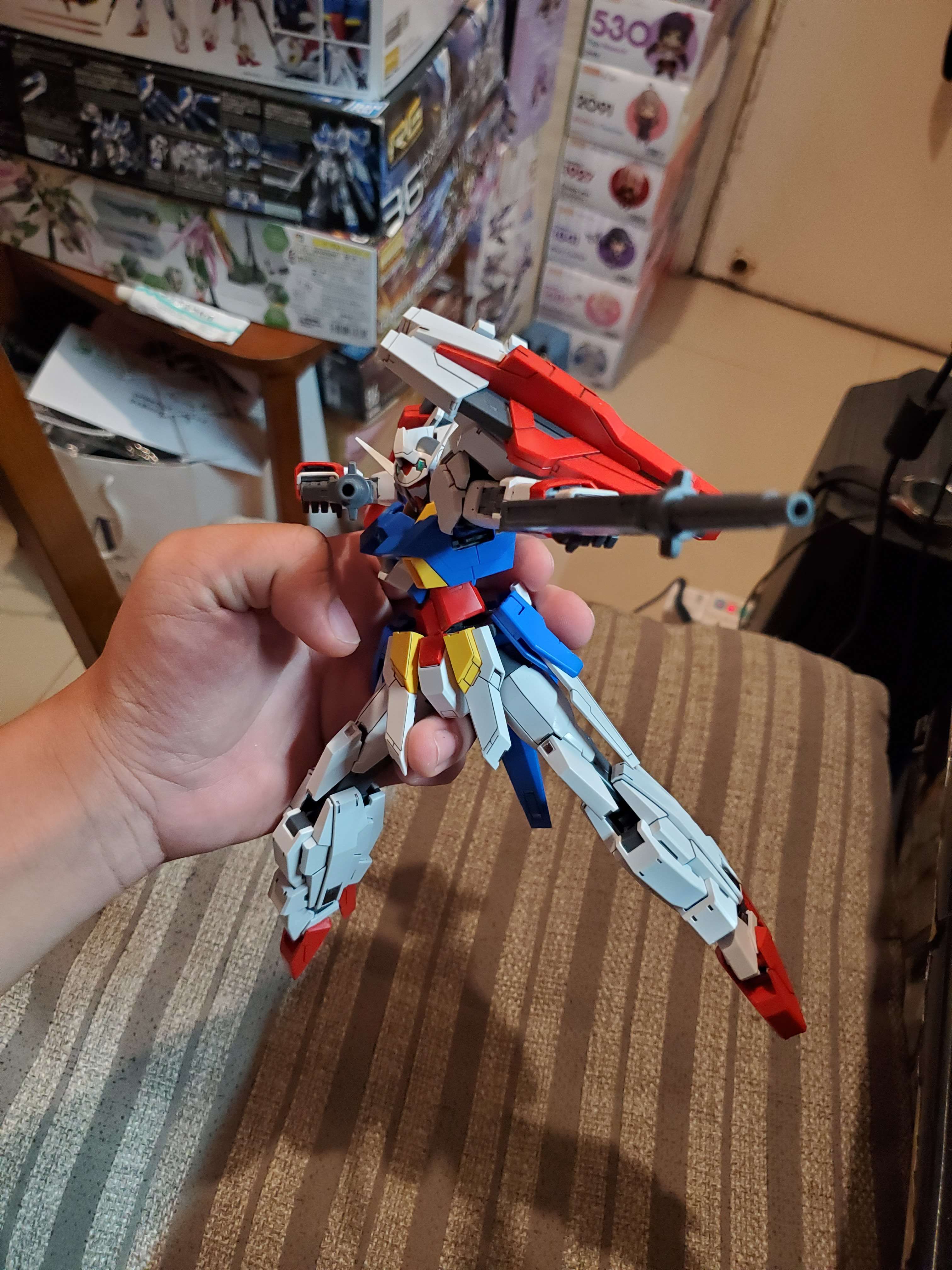 以外型來說挺好看的,但關節真的不行,尤其是小腿,十分之鬆,鎖定結構完全沒用,雖然之前組其他age 2一樣,算是一個通病,雖然挺垃圾的,但距離收整套age mg近了一步,因為我從age入坑,開始組高達(沒記錯應該係小學嘅時候,也是age開播開始),算是對age有情意結(好像雙炮型會比起普通型高?)