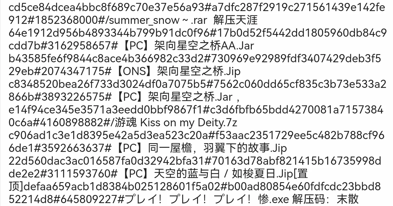 问一下这玩意儿还有用吗?我以前存了一堆秒传,甚至觉得可以留着当不占内存的直链。我一直攒一直攒,游魂可能是159357解压码,实际上这些东西我自己都用不了解压码可能随着时间推移而混乱,会的当送你了。秒传里面应该有人保留吧,不敢保证,第三张图试试nekobagu或者
