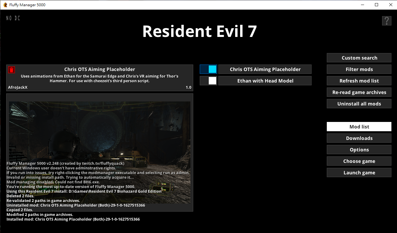 模組放置:工具目錄\Games\RE7\Mods