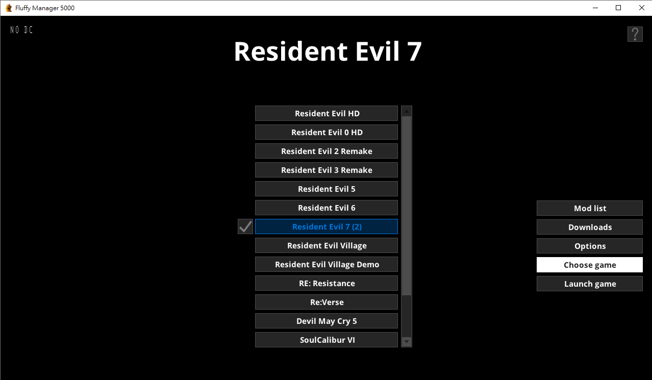 首先,必須擁有一個小工具:Modmanager。 將檔案放置適當的資料夾並點擊Modmanager.exe開啟,選擇對應的遊戲(如下圖)。 *Choose game>Resident Evil 7
