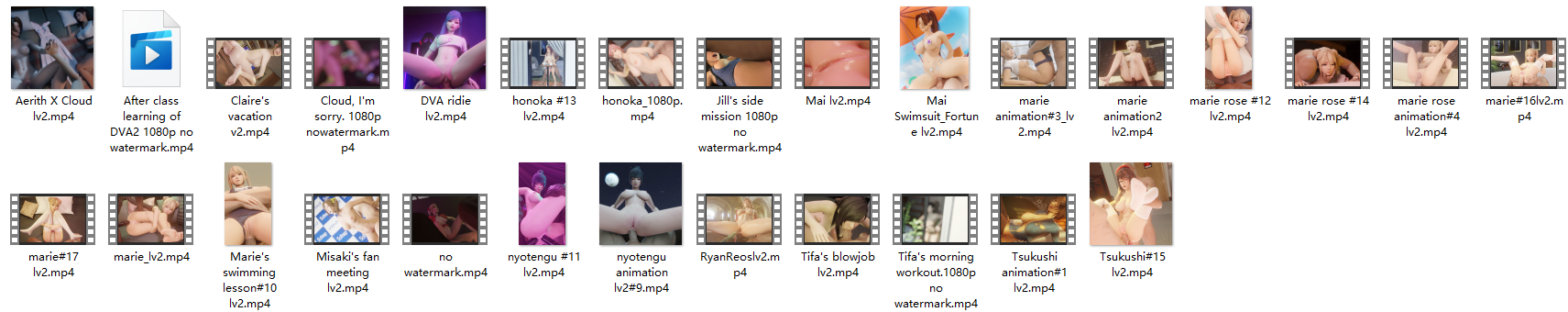 内容包含守望先锋D.VA,最终幻想蒂法,爱丽丝,生化危机吉尔,生与死等多个热门游戏角色