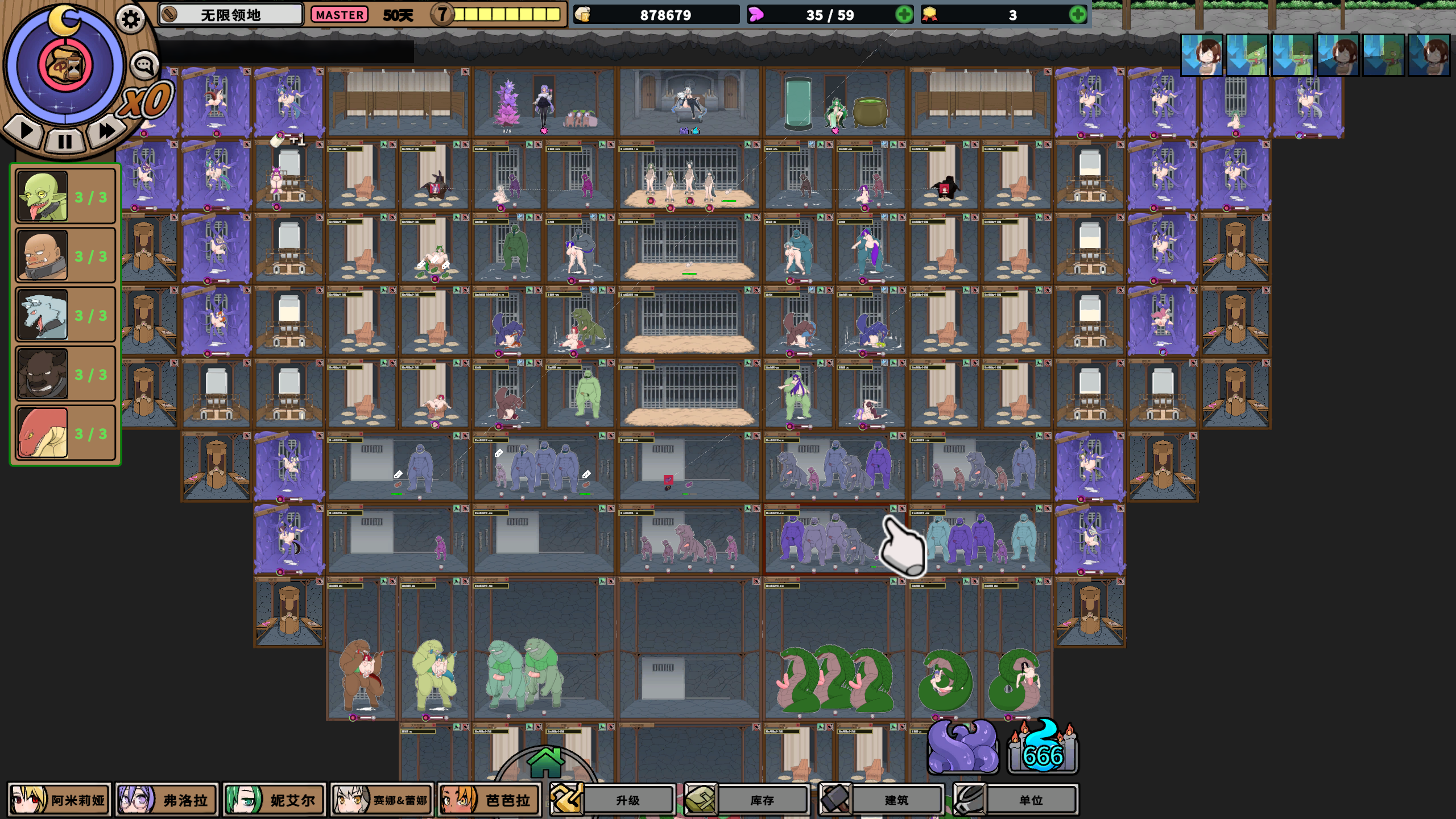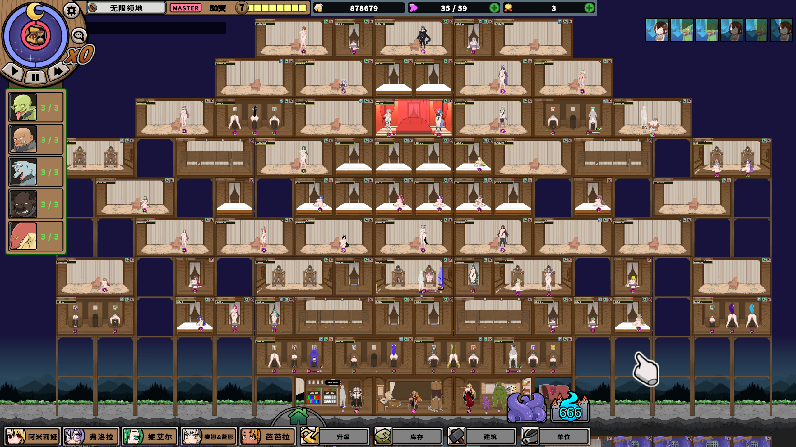 还有我玩到后期才发现奴隶不管怎么用体力都不下降,没办法日死,是因为堕落值满了后不掉了么