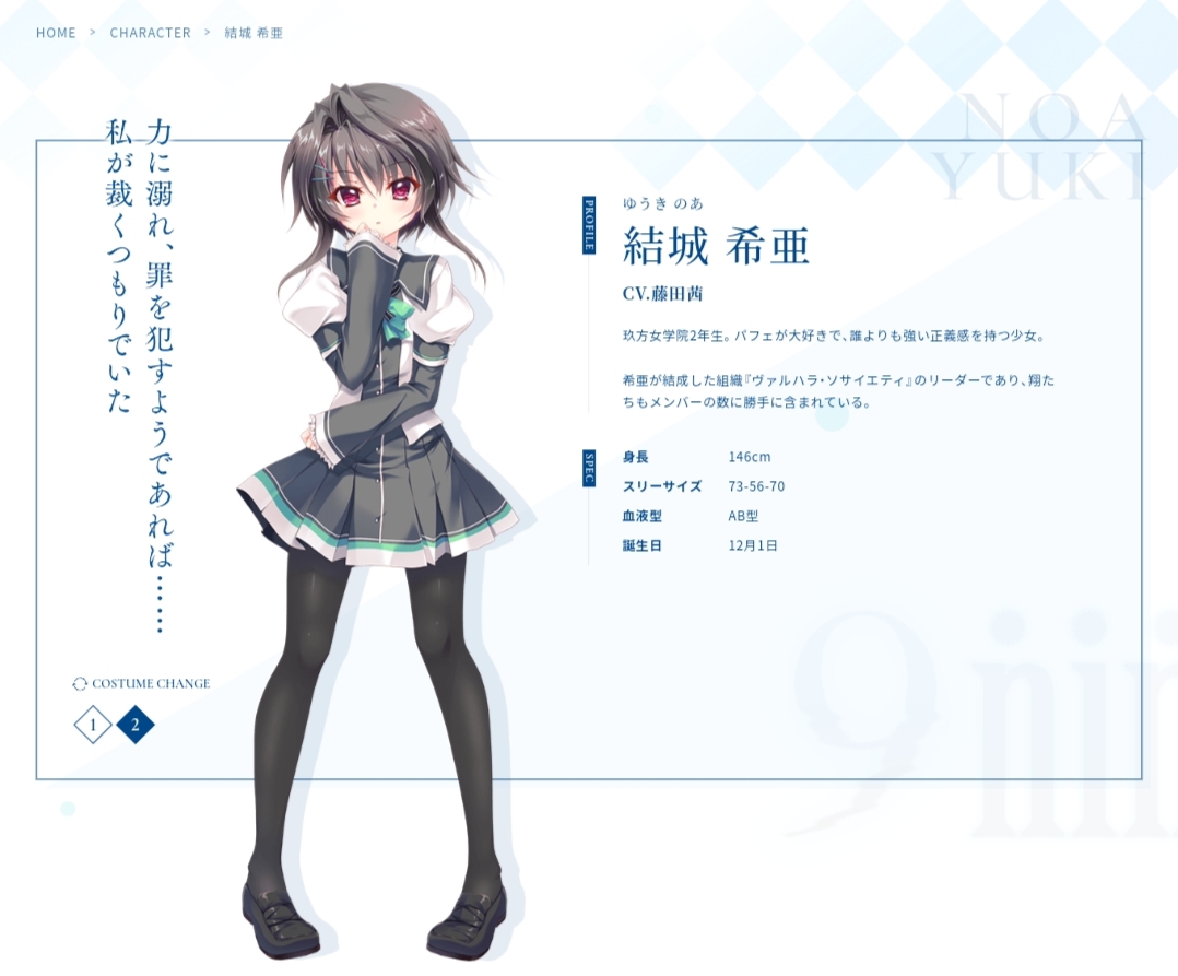 結城希亞:Vol.4的女主角,玖方女學院二年級生。喜歡吃「Nine Ball」的聖代,被翔暗中稱為「聖代女王」。正義感強烈性格十分中二,非常喜歡貓。因為興趣和喜好和春風非常類似因此在一些路線時兩人的關係很良好。