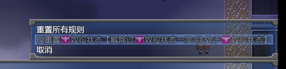如果你玩到后期刷了高淫乱等级,突然想看不是奴隶状态的事件,或者突然改过自新想攻略,这个时候去重置规则,你辛辛苦苦刷高的等级全给重置了