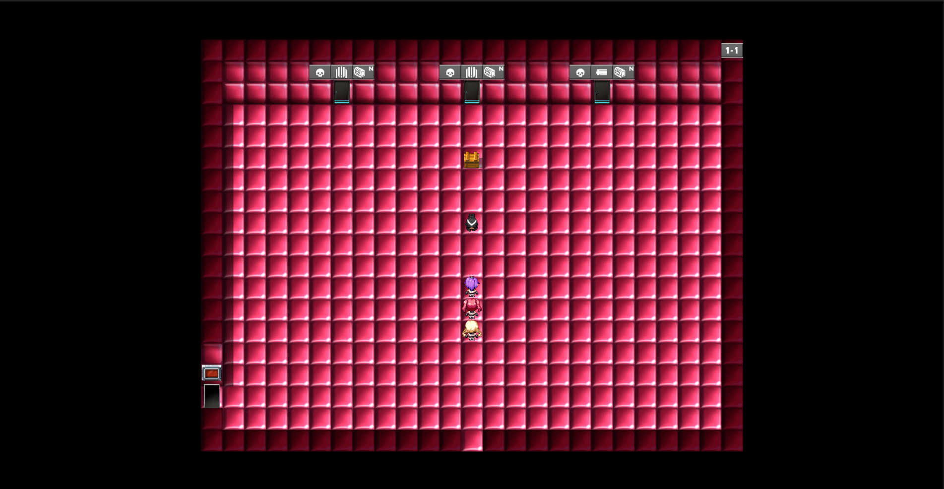 游戏模式本质是肉鸽,总共12关,打通每关会随机给一个装备,中途可以直接走左下角小道(按红色开关打开)退出本次攻略,敌人和宝箱刷新