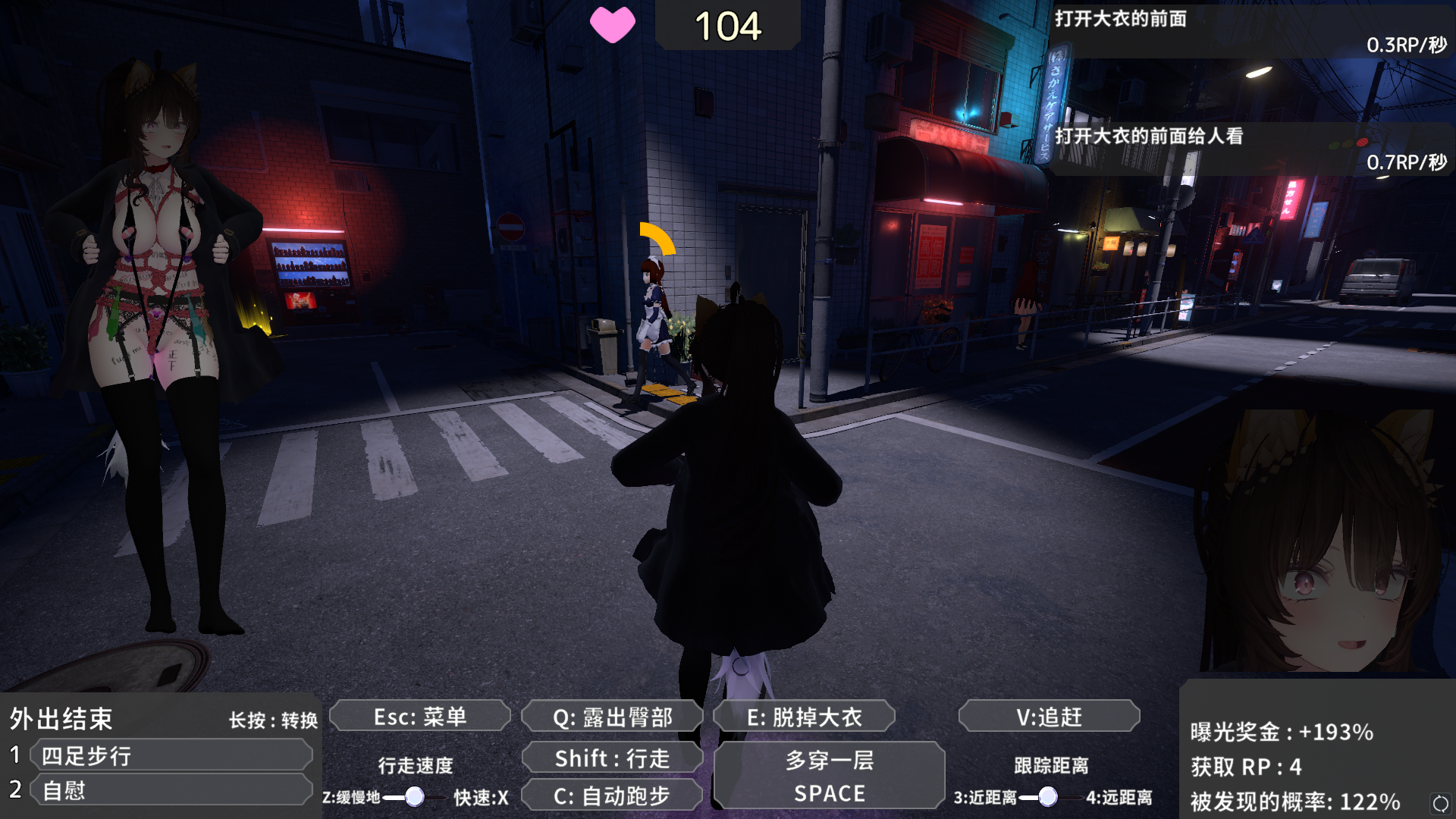 游戏总共三张地图,不同地图会有不同的露出任务和不同的互动场所,完成任务能获取大量点数