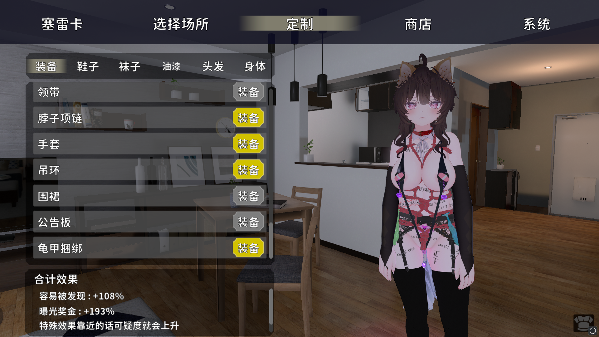 通过露出赚取点数购买配件,涂鸦,发型等