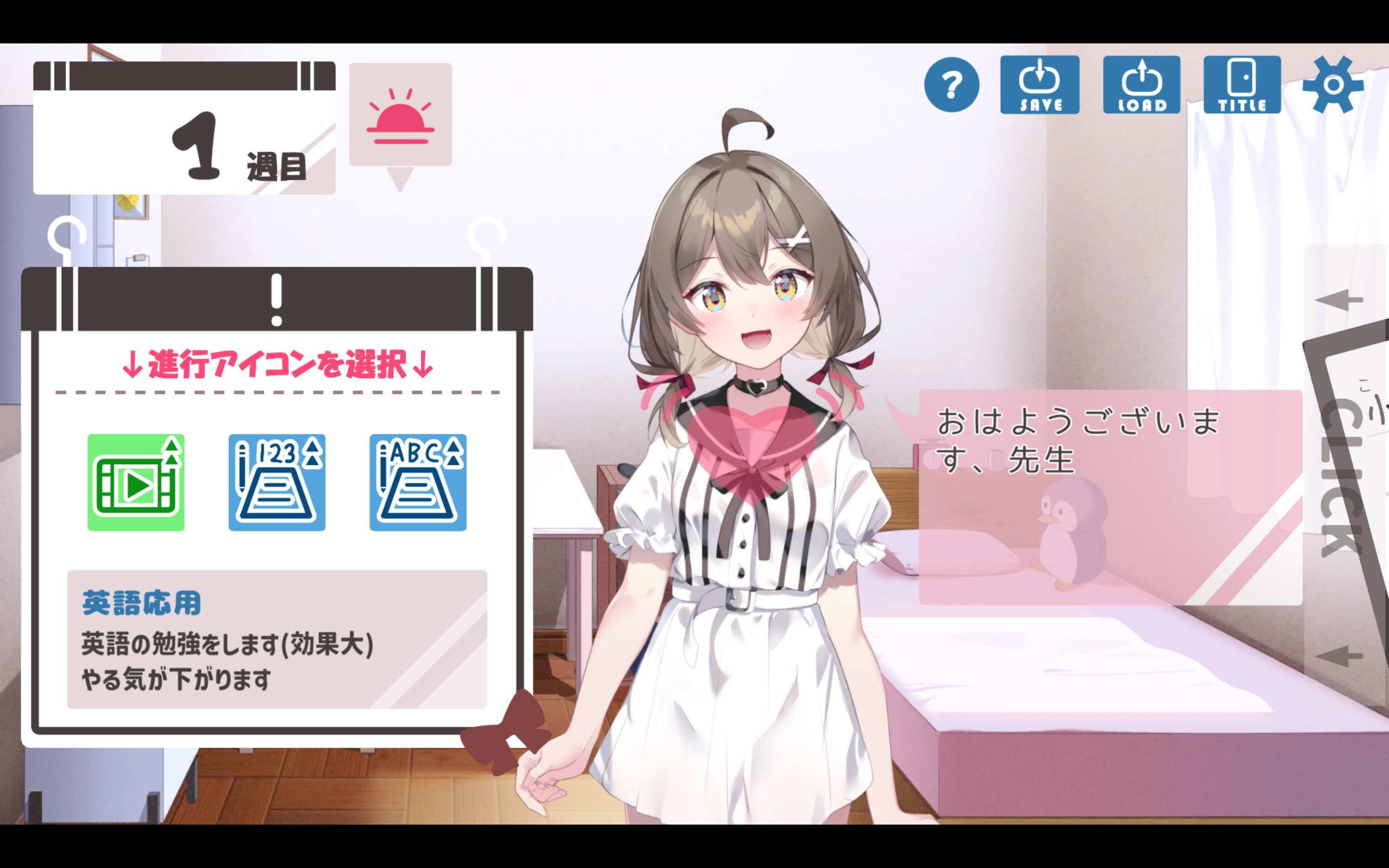 花音酱的状态会在右侧的记录板中显示出来,从名字那行开始,从左往右分别是:心情、性欲、好感度、各科目学力。