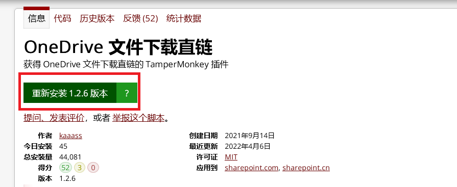 访问网页链接(greasyfork.org)点击"安装" [因为这里已经安装过了,所以显示的是重新安装]