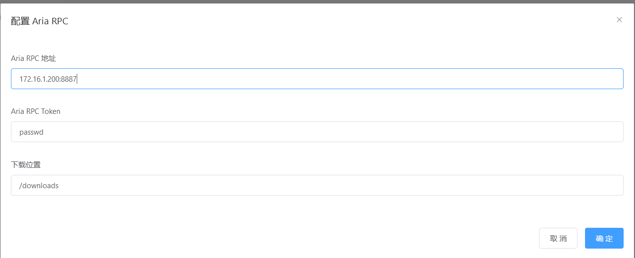 Aria RPC地址: 填写Aria服务端的IP:端口号
