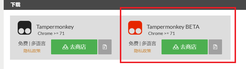 访问网页链接(www.tampermonkey.net)根据自己的浏览器选择安装 [注意!必须是图中的红色版本]