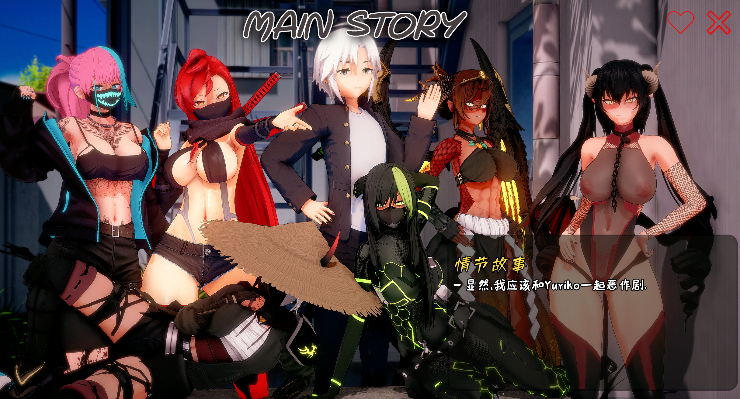在AI技术飞速发展的未来,神秘程序员Viper开发出了智能AI个体:"AI女孩",在Viper的限制下AI女孩被限制只能拥有等同于人类的能力,但不知为何,一个叫Khoren的AI女孩却突破了这个限制,并启动一项名为"AIRevolution"的邪恶计划. 主角Tylar在生日时,父母为他订购了一个AI女孩Akaime,故事由此展开... 游戏整体剧情非常诙谐幽默,描绘了一个未来可能的AI世界,甚至有对AI伦理的讨论,你需要选择你是FAI(FreeAI.人类与AI平等)还是SAI(SlaveryAI.人类奴役AI)最终会影响整个游戏的剧情走向.游戏人物