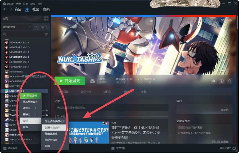 教你如何在steam有正版gal的前提下覆盖其他汉化组的版本并记录游戏时长