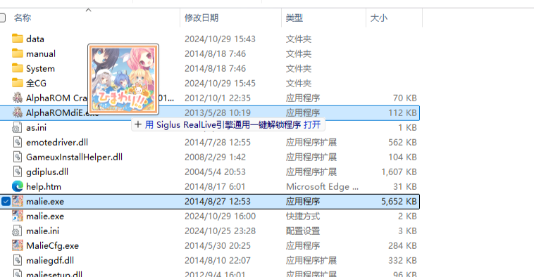 把malie.exe拖到AlphaROMdiE.exe就能启动了