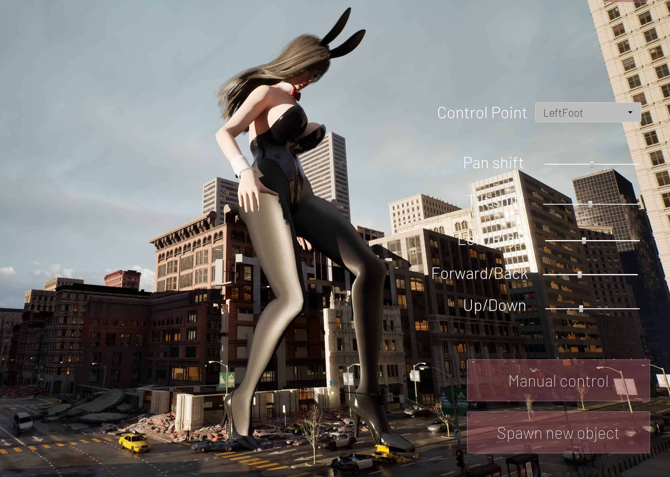 6. 新菜单:在 giantess 模式下按 C 可访问 giantess 模式下的手动操作新菜单,允许您更改面部表情、身体姿势和在地图上生成目标。(使用 Ctrl+R 旋转生成的对象)