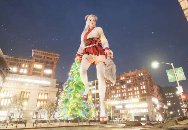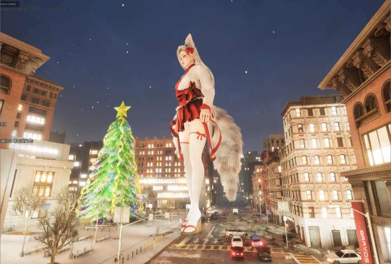 你将操作一个大型女巨人摧毁一切,身高在 50-80 米左右,但现在她可以长到 300 米左右,并且仍然可以有不错的表现。(只是不要同时砸碎太多建筑物)我将碰撞从实时体形碰撞更改为更加基于计算的碰撞。因此,碰撞可能会变得不那么准确(您在玩游戏时会感觉到),但是,性能要好得多。同时,建筑物破坏效果以前是在 CPU 上计算的,现在它在 GPU 上运行(通过 Niagara 粒子系统),速度提高了大约 500%。