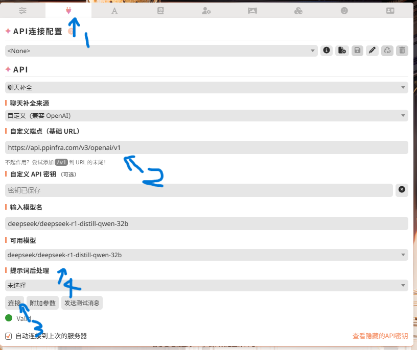 4.有了api后,输入在自定义端点里面输入。