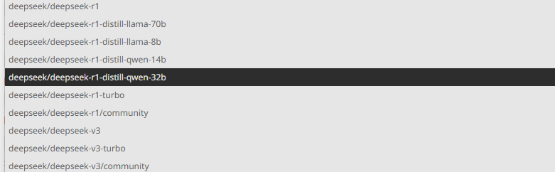 然后是模型的选择,选择带有deepseek的自己看看选择的文字上那个需要的Tokens或金额最多,那个就更好。