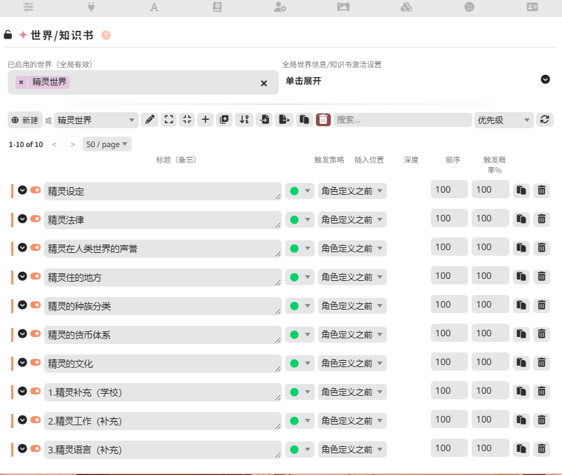 还有世界书就相当于小说的世界观,我还用3天时间创建了一个不完整的精灵世界观。