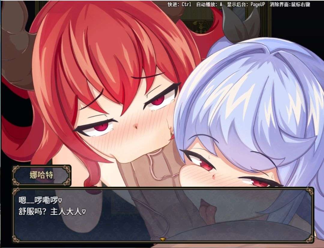 玩法:一款休闲的剧情类游戏,去掉了传统RPG的打怪升级打怪买装备,全程观看精彩的剧情和雌小鬼魔王的被调教之旅即可,战斗界面就是选择抵抗或放弃抵抗,抵抗成功就给敌人豆鲨了(另一种剧情,建议先存个档。每经过一次事件,NPC的对话都会改变,挺有意思的)