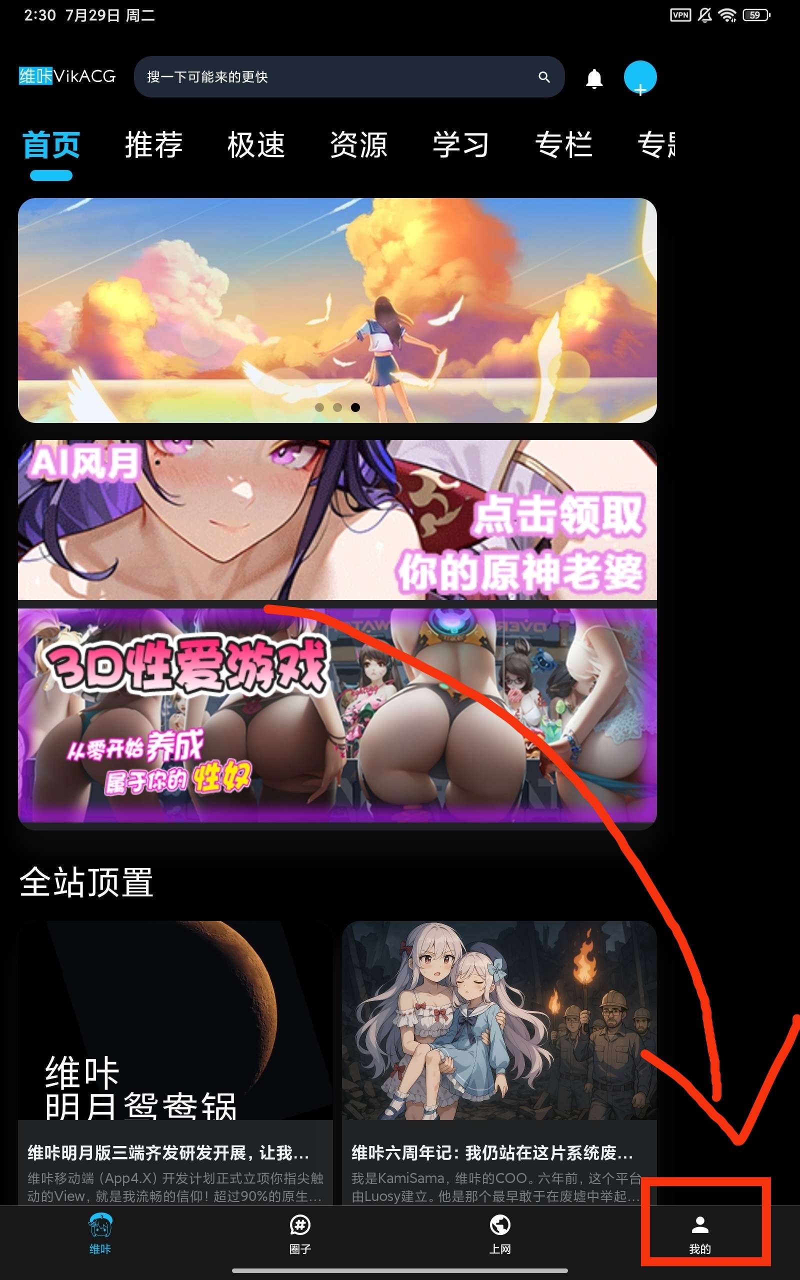 我们进入维咔主页面,然后点击右下角(我的)按钮
