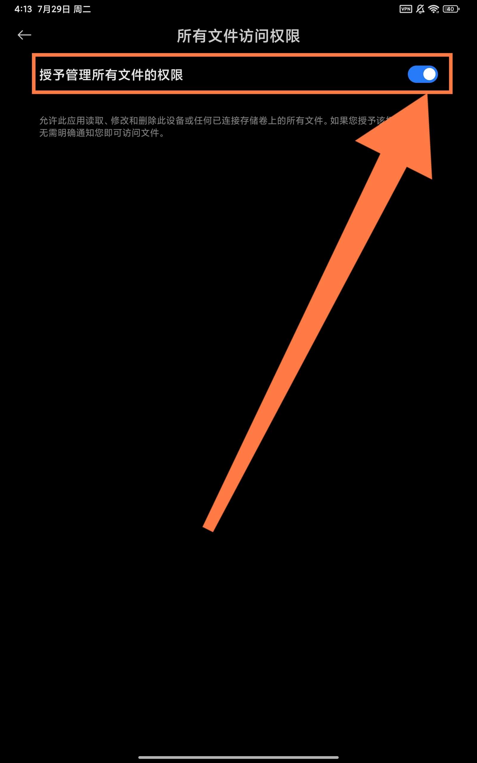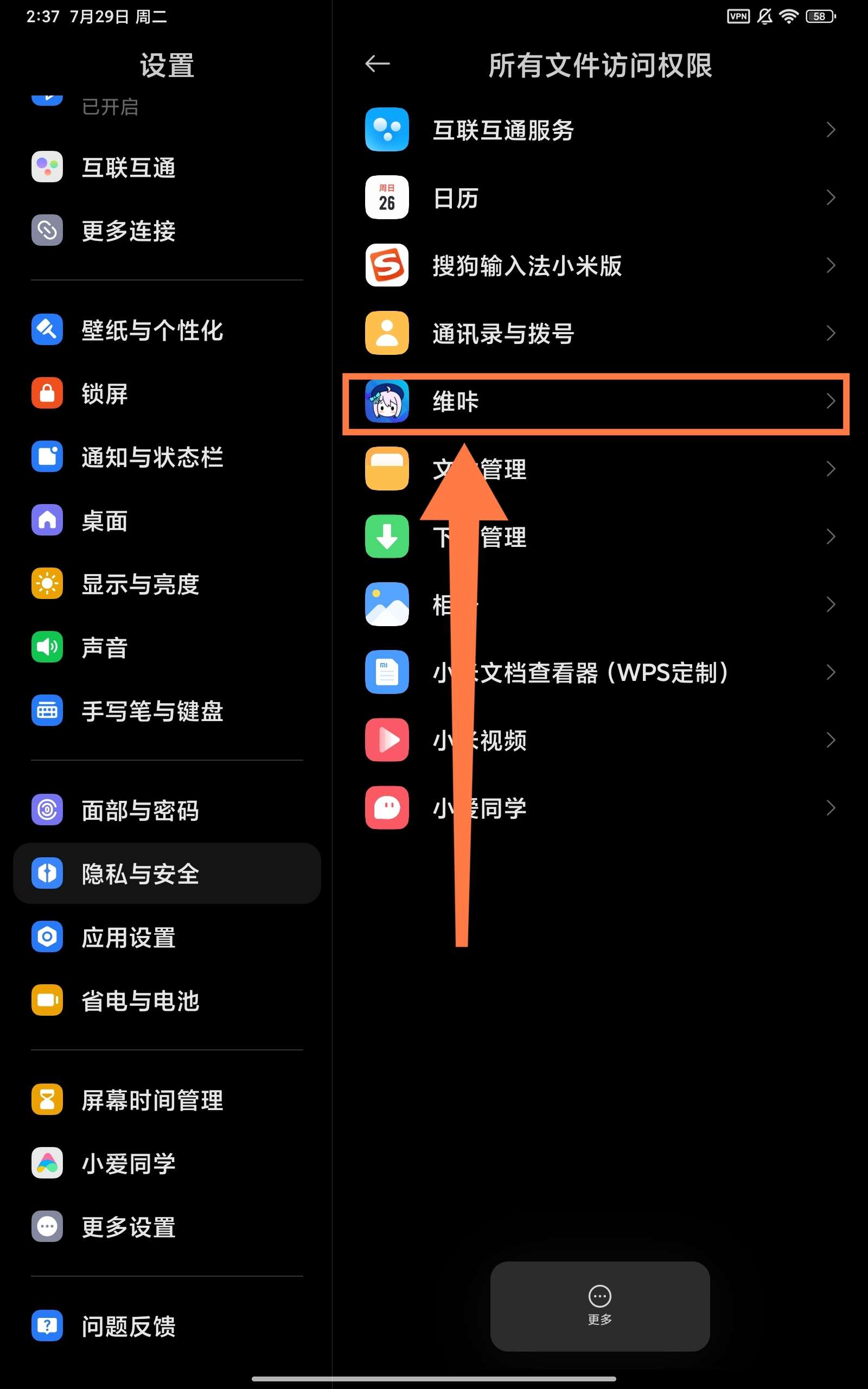 第一步:打开维咔的所有文件访问权限