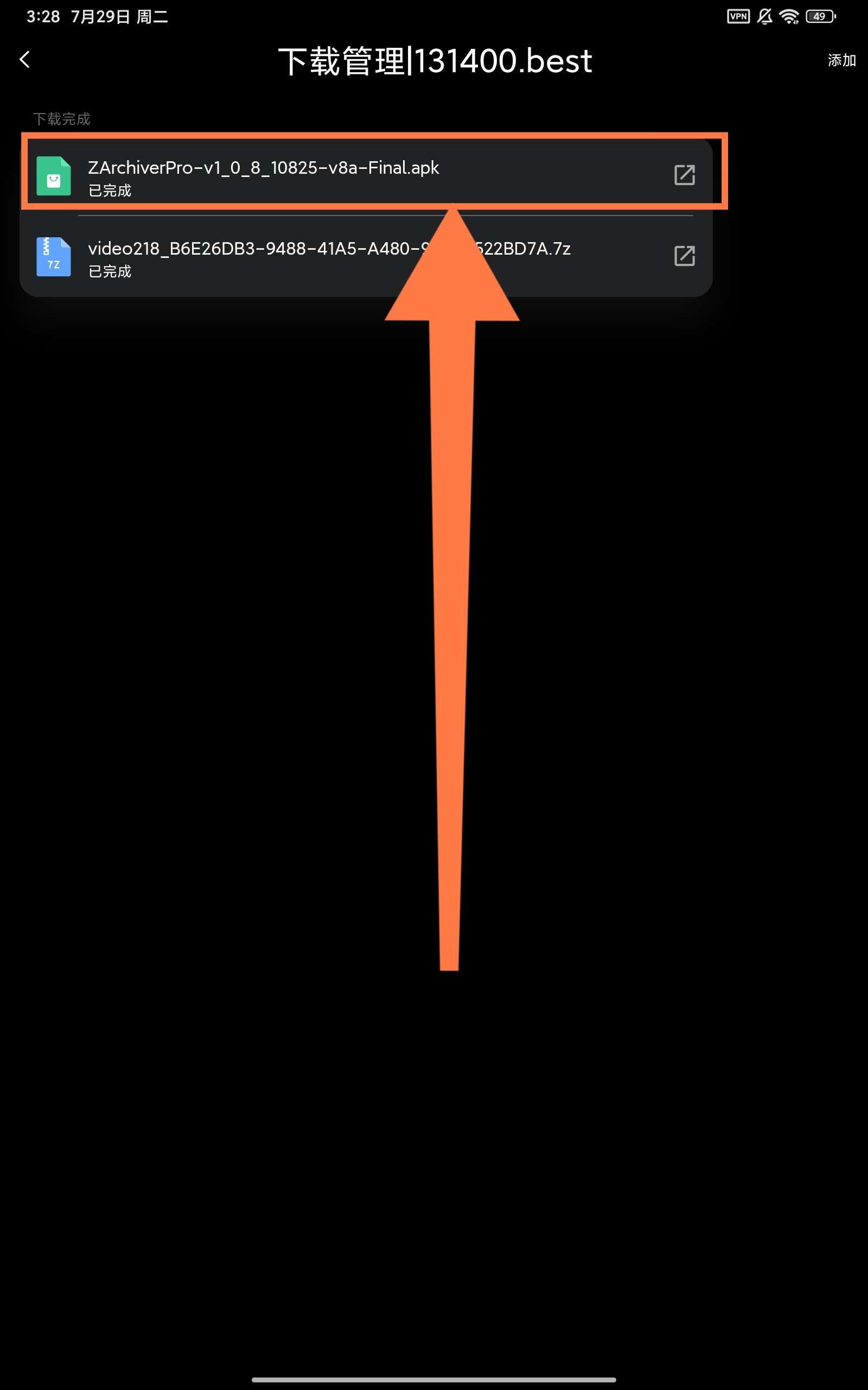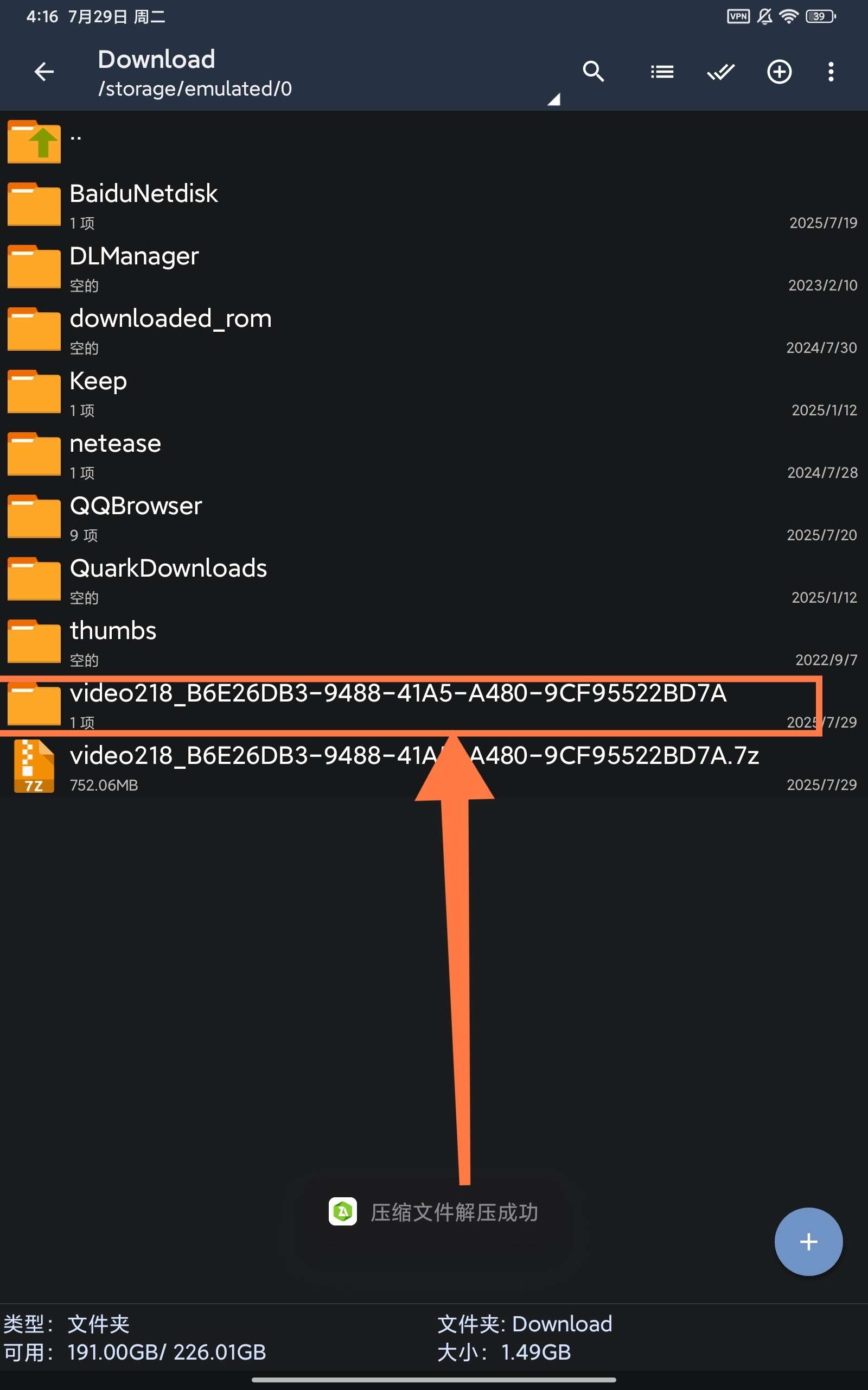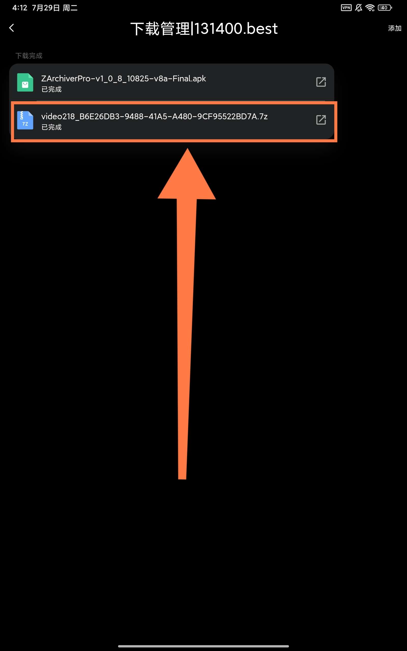 首先返回下载管理页面,点击这个下载好的video,并用解压软件打开