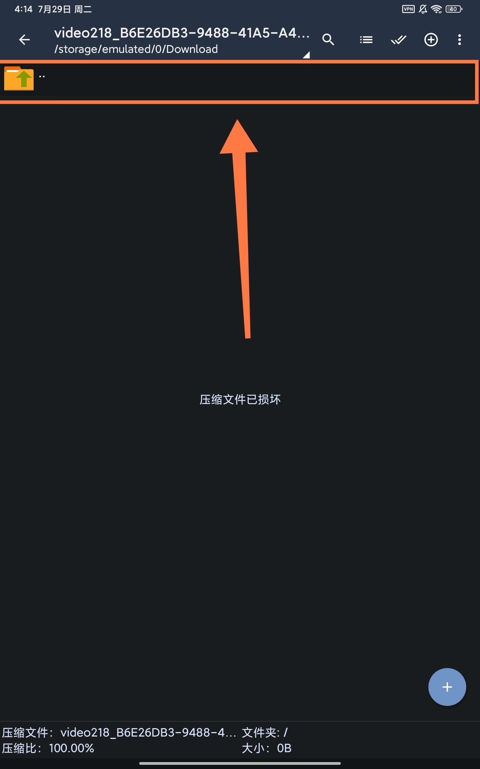 接着返回,这是我们看见压缩文件已损坏,不要惊慌,点击上面的..,对,就是..