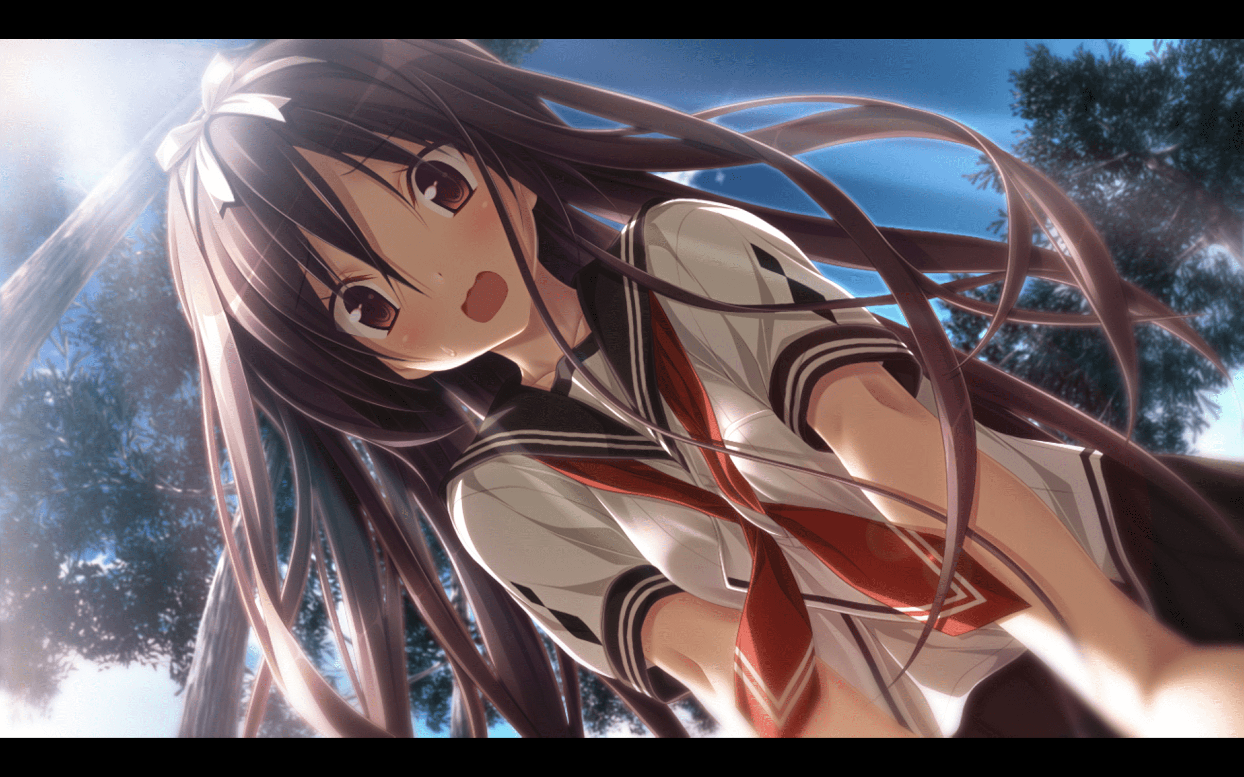 无瑕的双眸带着些许稚气,长长的秀发随肩而下配上朴素的白色发带,给人以邻家少女般可爱又不失亲切的少女,其名,织部 心。