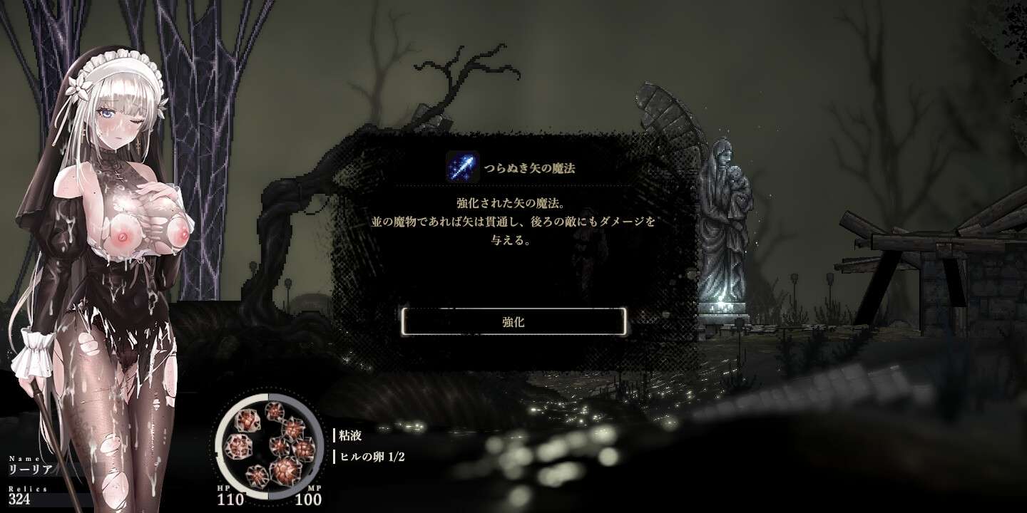 这是一款以“被敌人打倒时的绝望感、对毁灭·死亡的憧憬、被虐的官能”为主题的简单动作角色扮演游戏。由于包含暴力场景和恐怖表达,因此不适合胆小的人。
