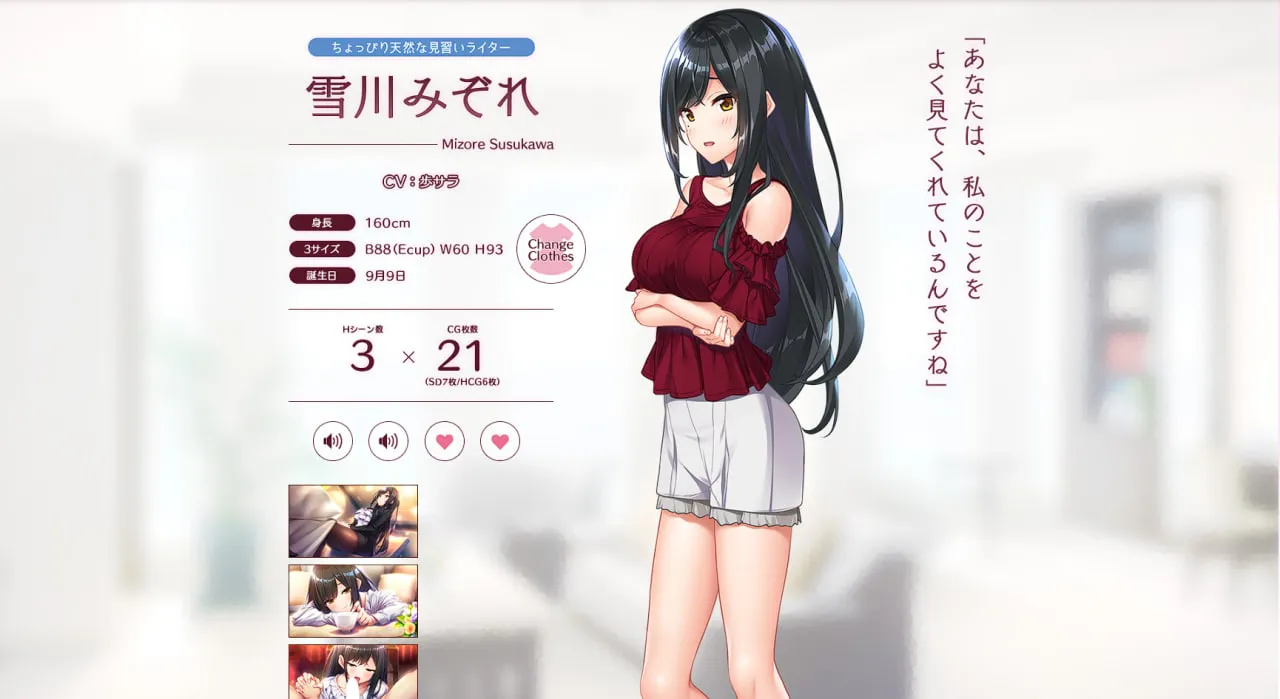 除本职工作外,副业是游戏编剧的——[雪川みぞれ]。
