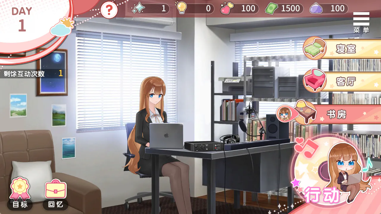 每日有四个时段,玩家可选择家中各个房间探索、行动,以及寻找慧晰与她互动。
