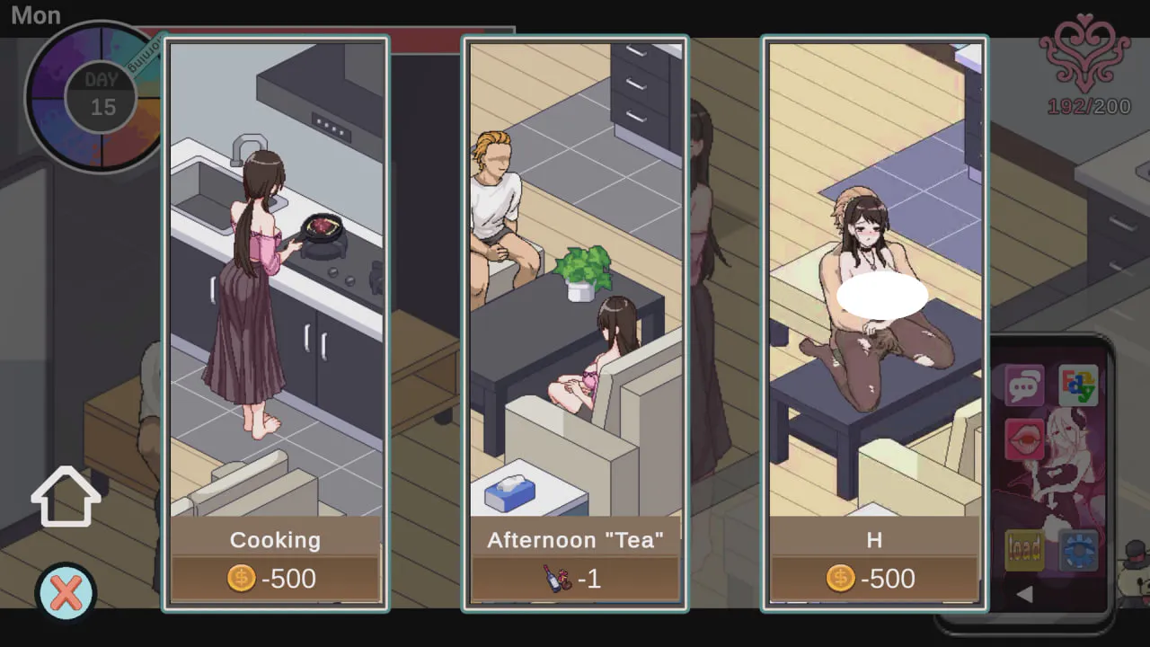透过打工赚钱,可以购买更多推进剧情的强力道具。例如「针孔摄影机」能偷窥隔壁小夫妻的房间、「忍者卷轴」可以开启特殊玩法。而随着千穗的堕落能量不断累积,玩家可以解锁更多魅魔技能,开启更多互动与剧情。