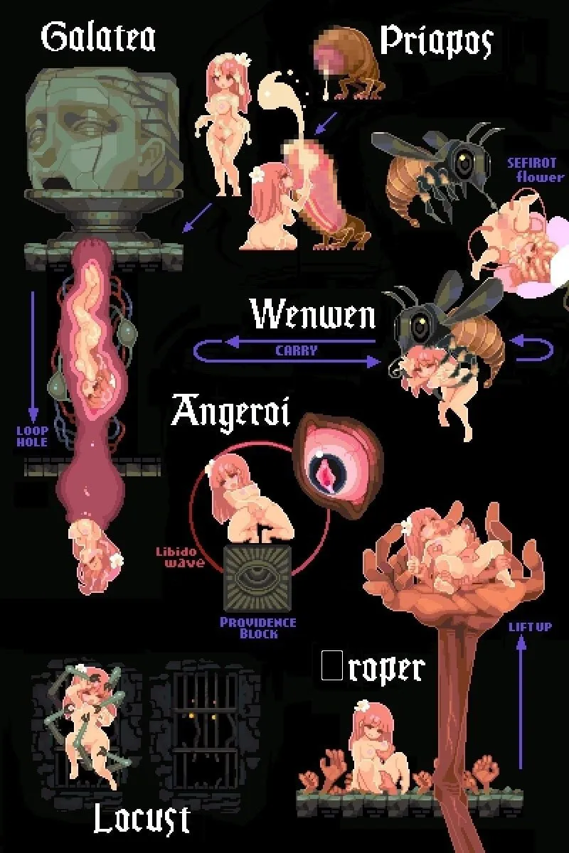 敌人与机关皆充满H元素的、需用身体来攻略的迷宫探索动作游戏。