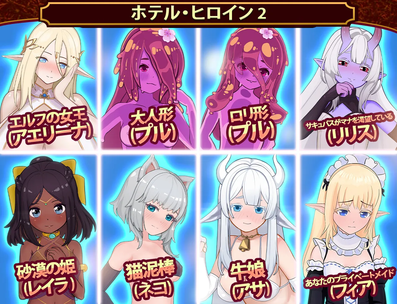挤牛奶、教导年轻的公主、与女骑士战斗、捉弄睡觉的女孩、培养史莱姆,还有其他许多有趣的事情!总共有 25 个场景。