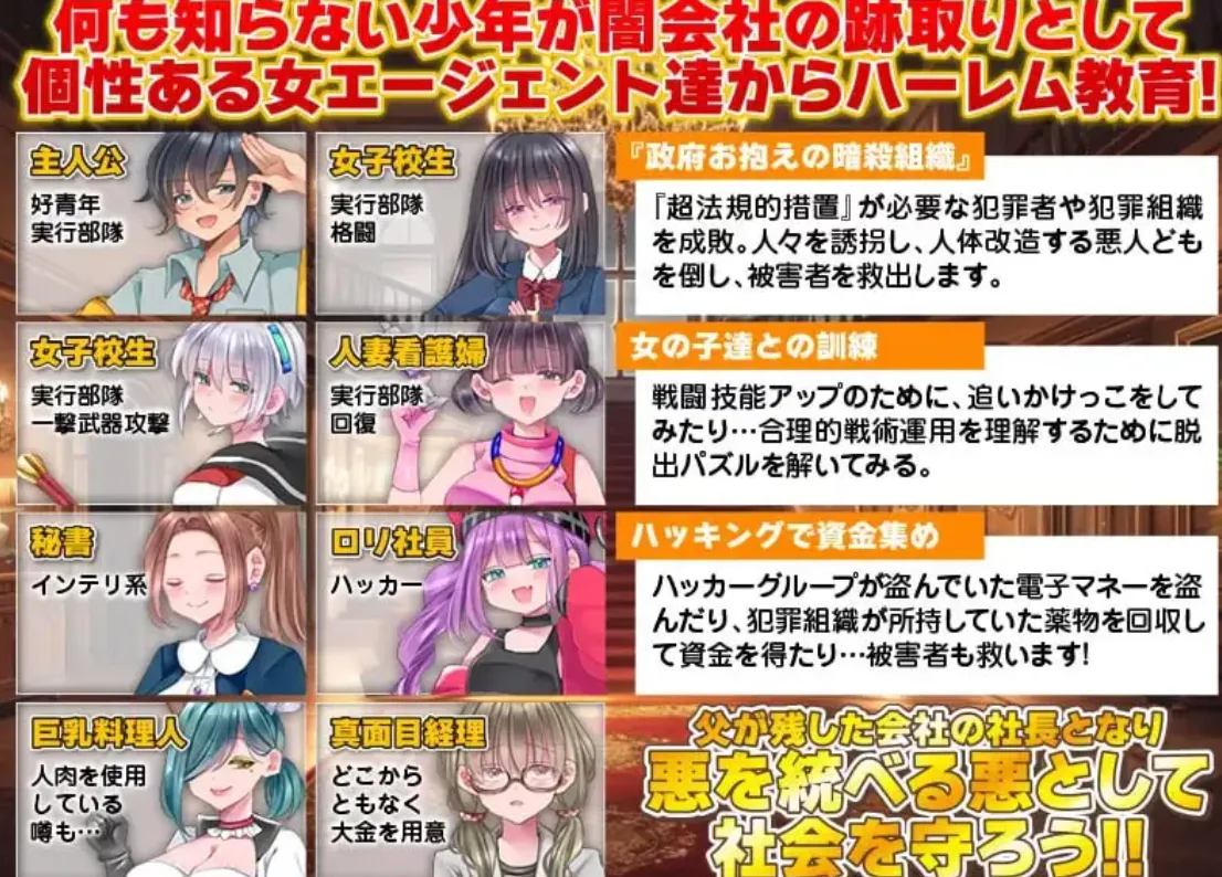 一无所知的少年作为黑暗公司的继承者,接受个性鲜明的女特工们的后宫式教育!