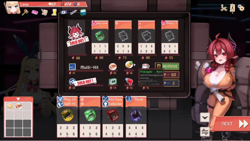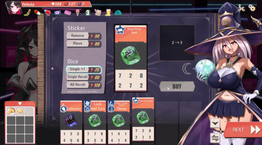 -通过改造增加骰面的数值,贴上贴纸(竟然能贴2张!)赋予特殊效果,或者利用遗物来强化整个骰组。