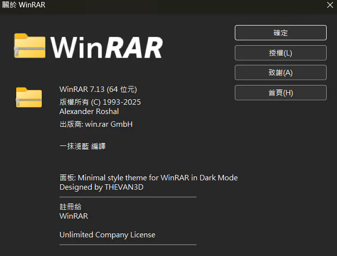 打開軟體,說明>關於WinRAR