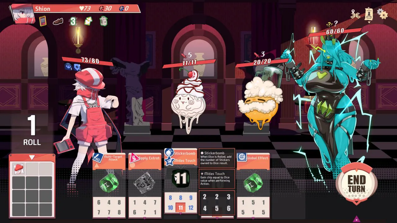 -通过改造增加骰面的数值,贴上贴纸(竟然能贴2张!)赋予特殊效果,或者利用遗物来强化整个骰组。