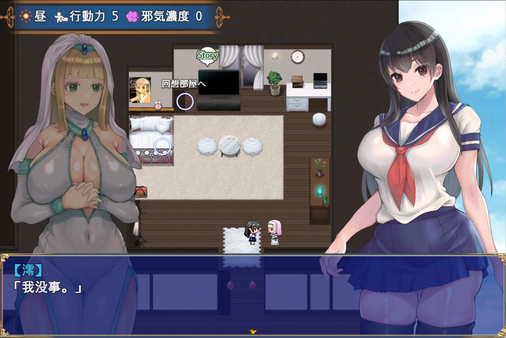 在地牢探索时也可以与女孩H。通过净化H来拯救她们吧!