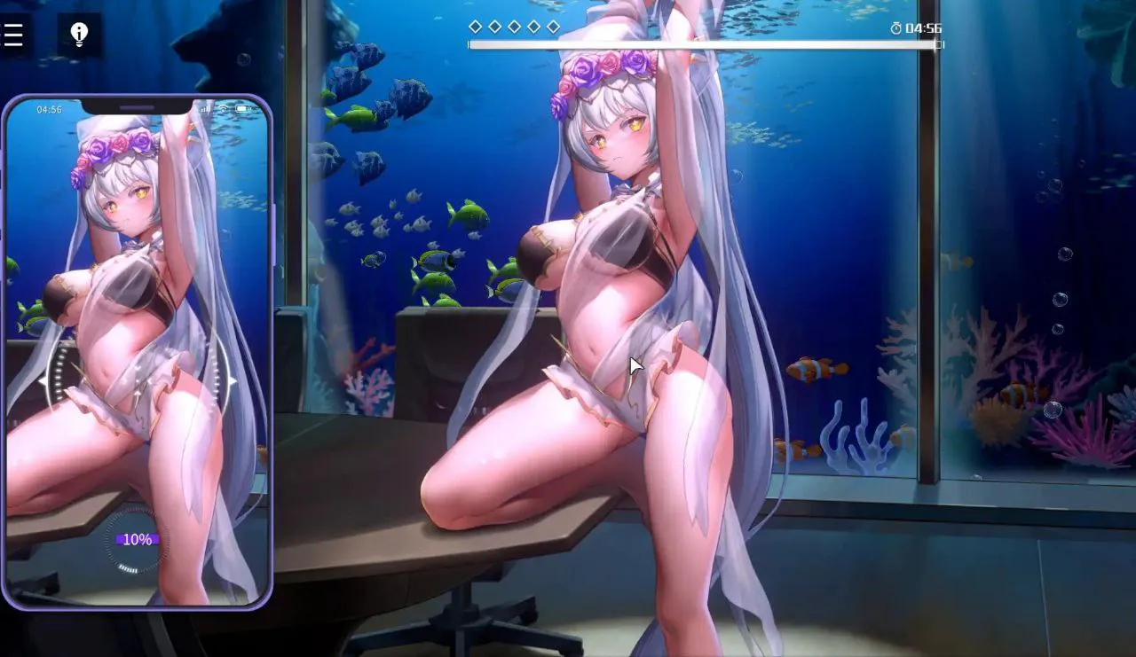 这是一款颇具创意的“找不同”为玩法的美少女互动游戏。通过使用鼠标,找出游戏中“手机”与画面中的不同,触发与与美少女的互动。