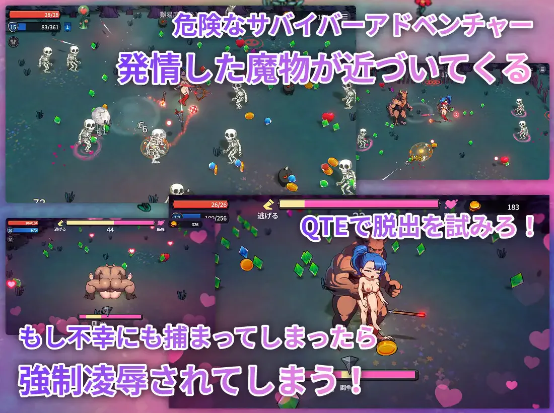 ▷ 高度可玩的Roguelike游戏:每次都有不同的地牢、角色构建和H事件。