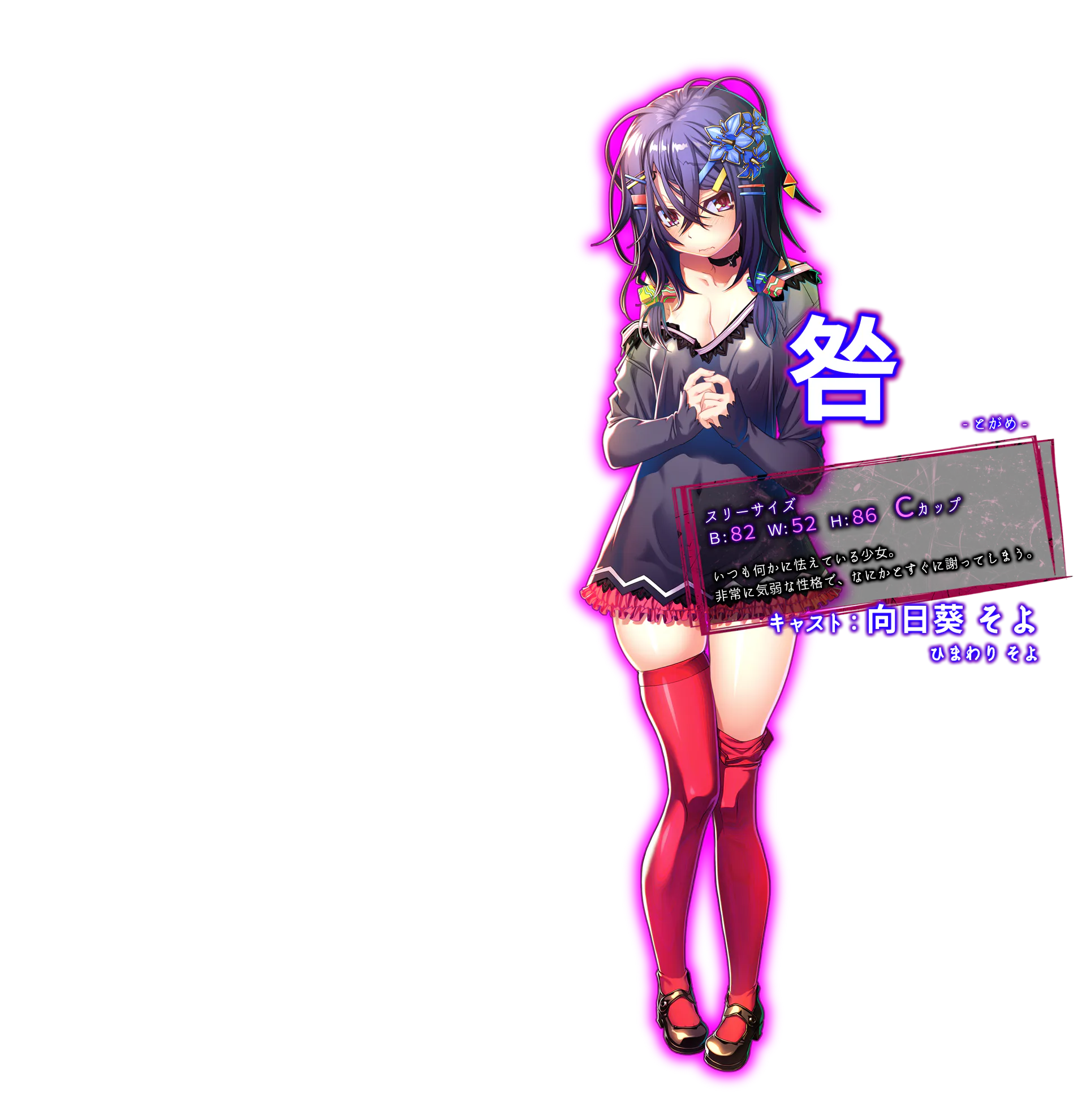 咎 三围:B-82 W-52 H-86 总是在害怕着什么的少女。 |