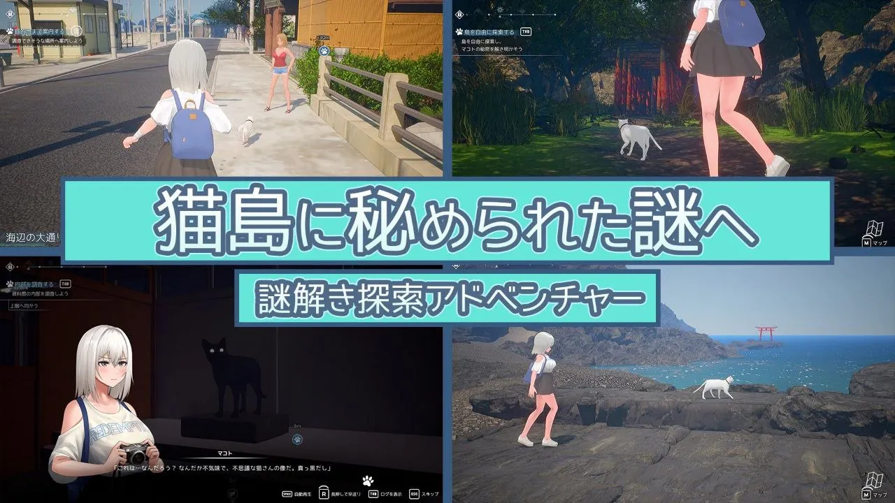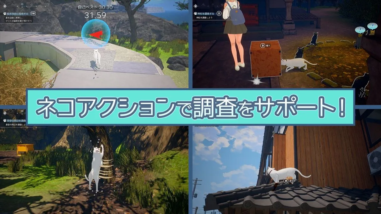 玩家将化身为住在猫岛上的一只白猫,钻进狭窄的缝隙,或是轻巧地跳上高处……发挥这些猫咪独有的灵活本领,协助真进行调查。
