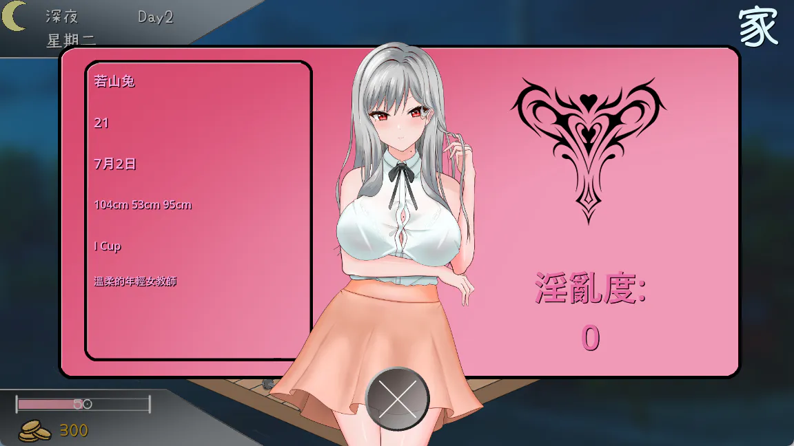 追加了7种新姿势(+6种变体) 追加了新ending: 如果在Day29没有让上杉知道你们的性关系,在淫乱度超过75后会触发「隐瞒」ending 追加新的小故事,可以在若山老师的房间触发 修复了没法触发「游戏中心」的bug 现在可以储存音量,分辨率及视窗模式了