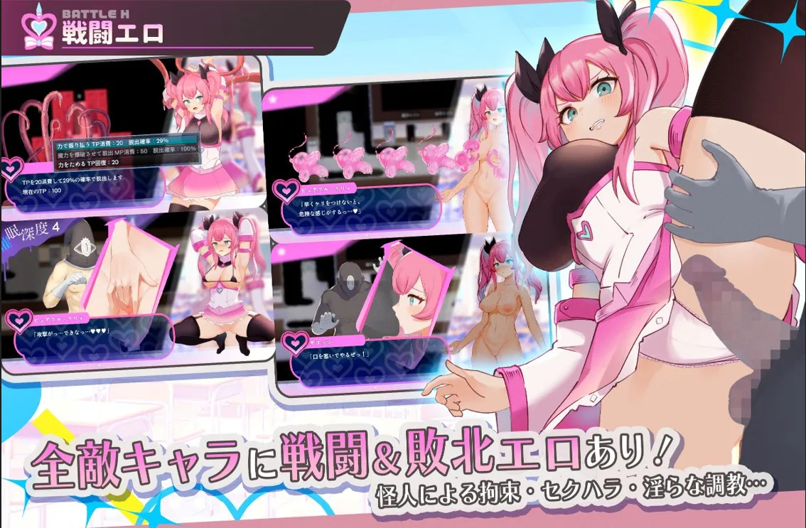 触手·拘束·催○…挺身对抗邪恶组织的淫谋!处女通关可能的变身工口RPG!