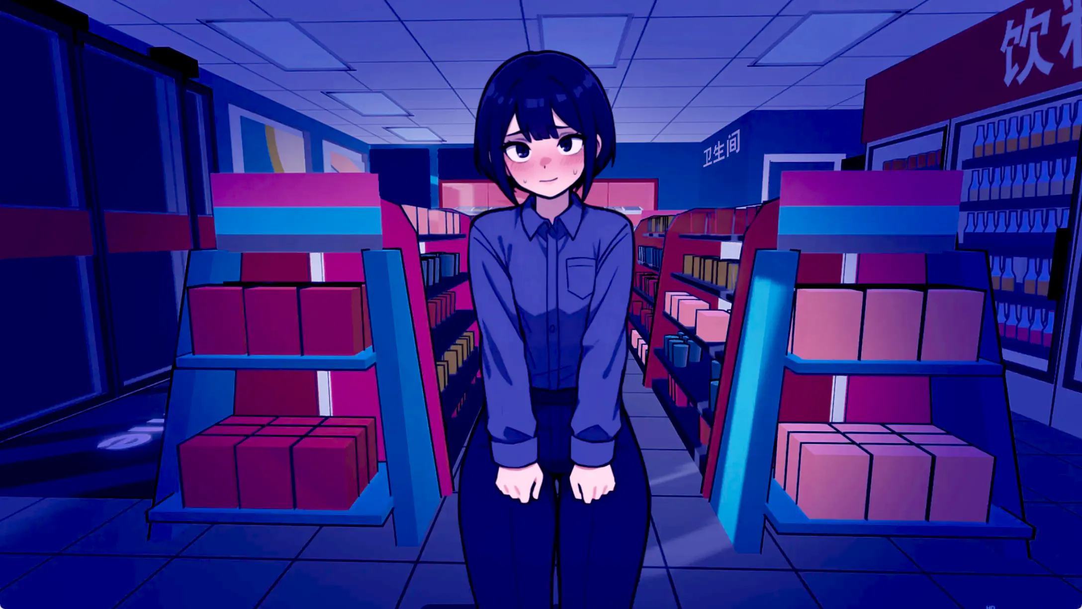 在《与 Femboy 的深夜轮班》中,你扮演一位善良可靠的男生,只想在冷清的小型便利店里安稳度过夜班。