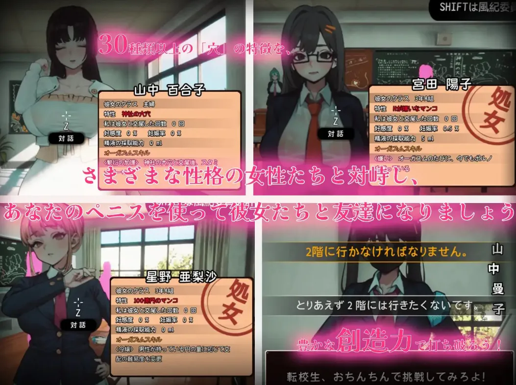 ◆为让小镇再次繁荣,你被强制转学到一所名为“私立援助怀孕学园”的学校。