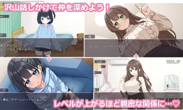 本作是以像素动画呈现的同居生活模拟游戏。通过与姐妹互动提升好感度等级。